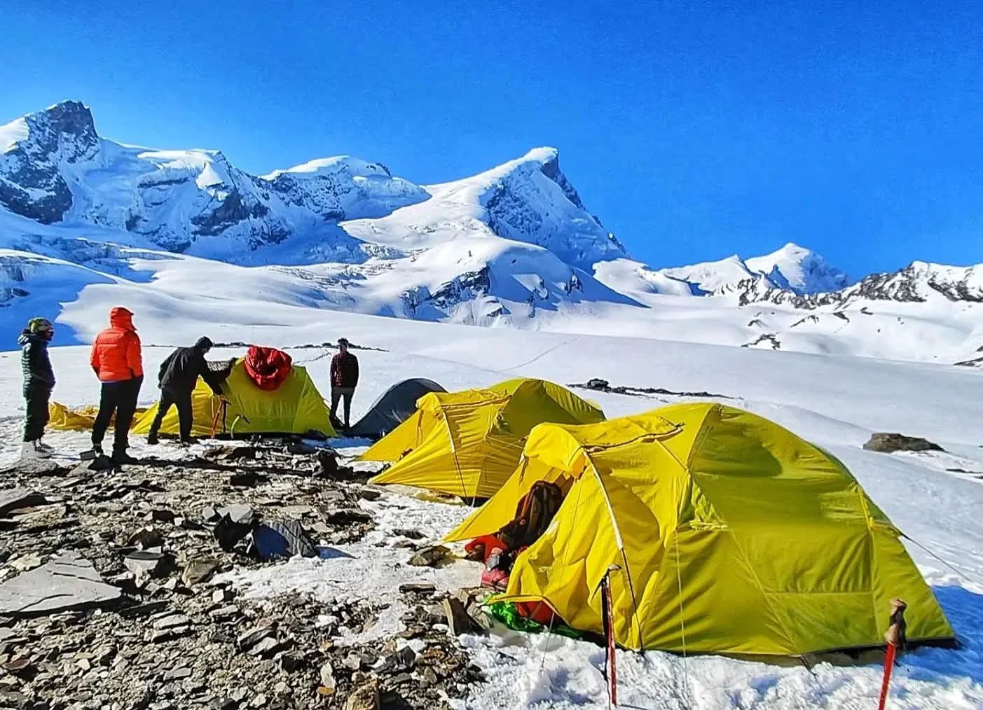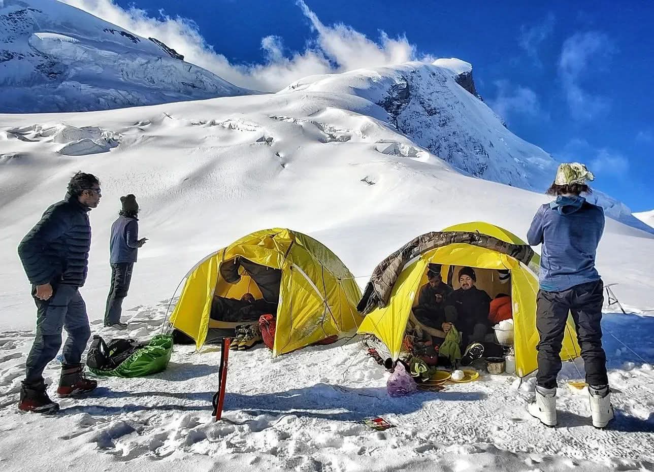 After 4–5 hours of steady climbing, you arrive at the Advance Base Camp (4,200 m). The campsite is located on a rocky moraine field, surrounded by glacial streams and towering Himalayan peaks. This is a significant point in the expedition, as all load ferries, acclimatization rotations, and technical training sessions will be carried out from here.